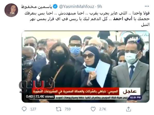 فيما قالت متابعة: "كل الدعم ليك يا ريس في أي قرار يمس نهر النيل".