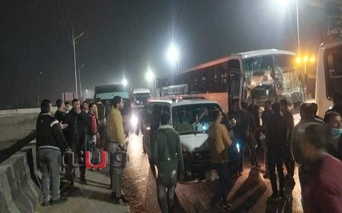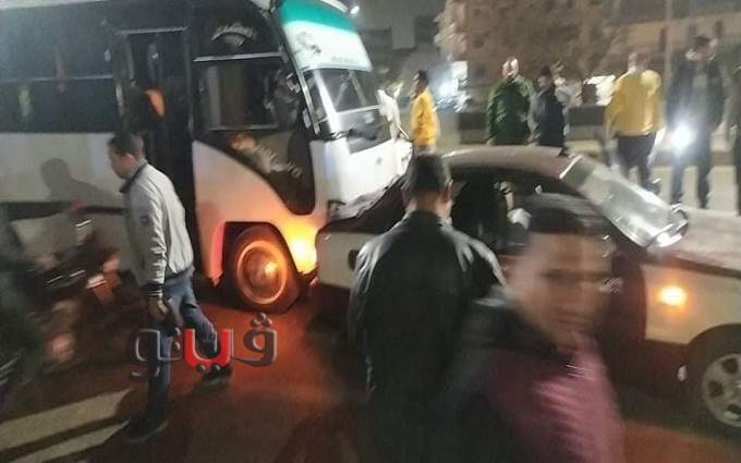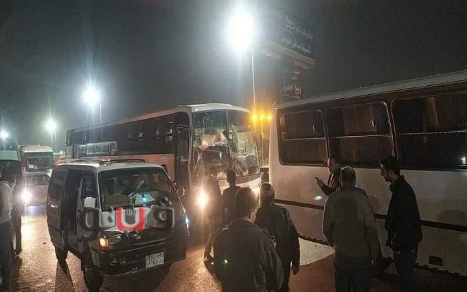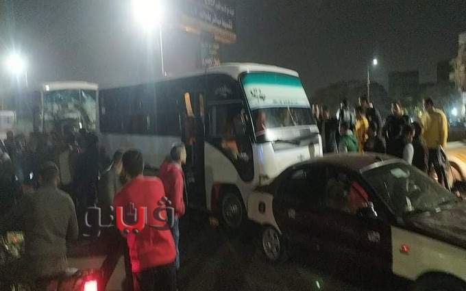تصادم أتوبيسين وسيارة ملاكي أعلى كوبري بلبيس بالشرقية | صور