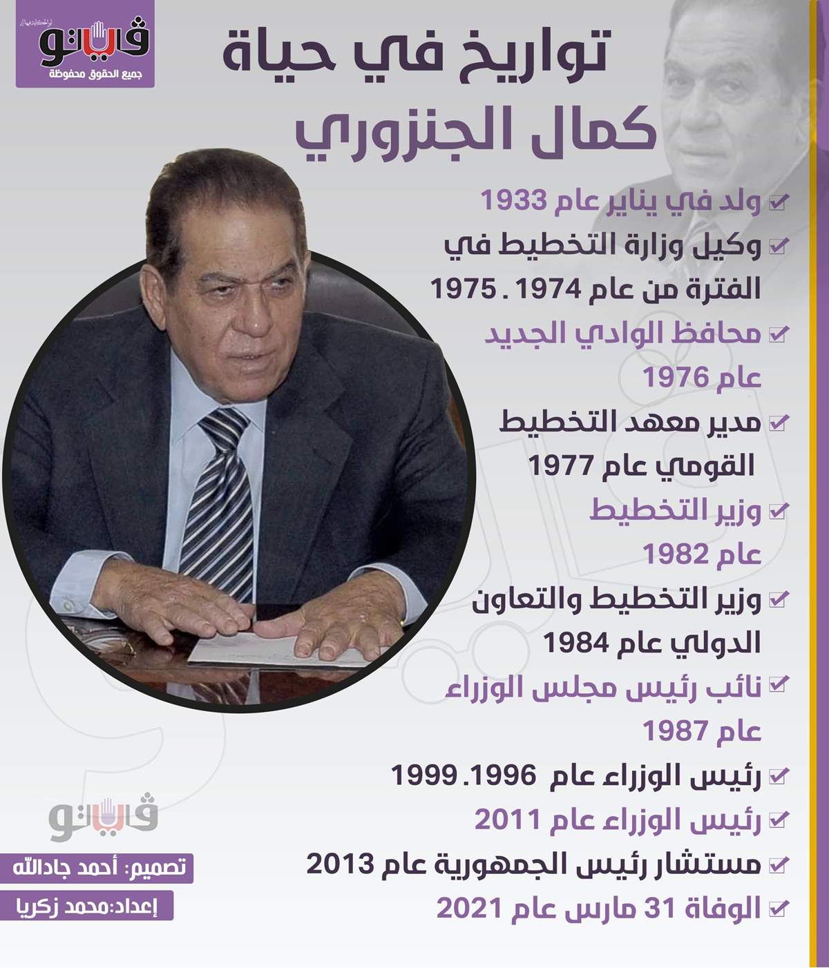 تواريخ في حياة كمال الجنزوري الأربعاء 31/مارس/2021 - 12:27 م 3/31/2021 12:27:03 PM الدكتور كمال الجنزورى محمد زكريا شارك طباعة 18 حجم الخط شارك طباعة وفاة كمال الجنزورى رئيس وزراء مصر الاسبق كمال الجنورى