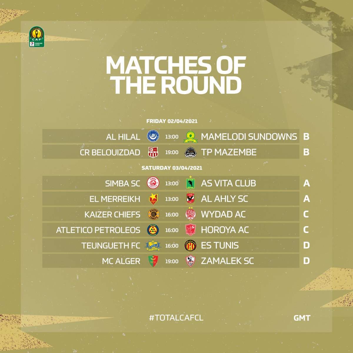 الجولة الخامسة ستشهد أيضا مواجهة صن داونز مع الهلال السوداني ومازيمبي مع شباب بلوزداد في المجموعة الثانية بينما يلعب فيتا كلوب مع سيمبا التنزاني والترجي التونسي مع تونجيث السنغالي.