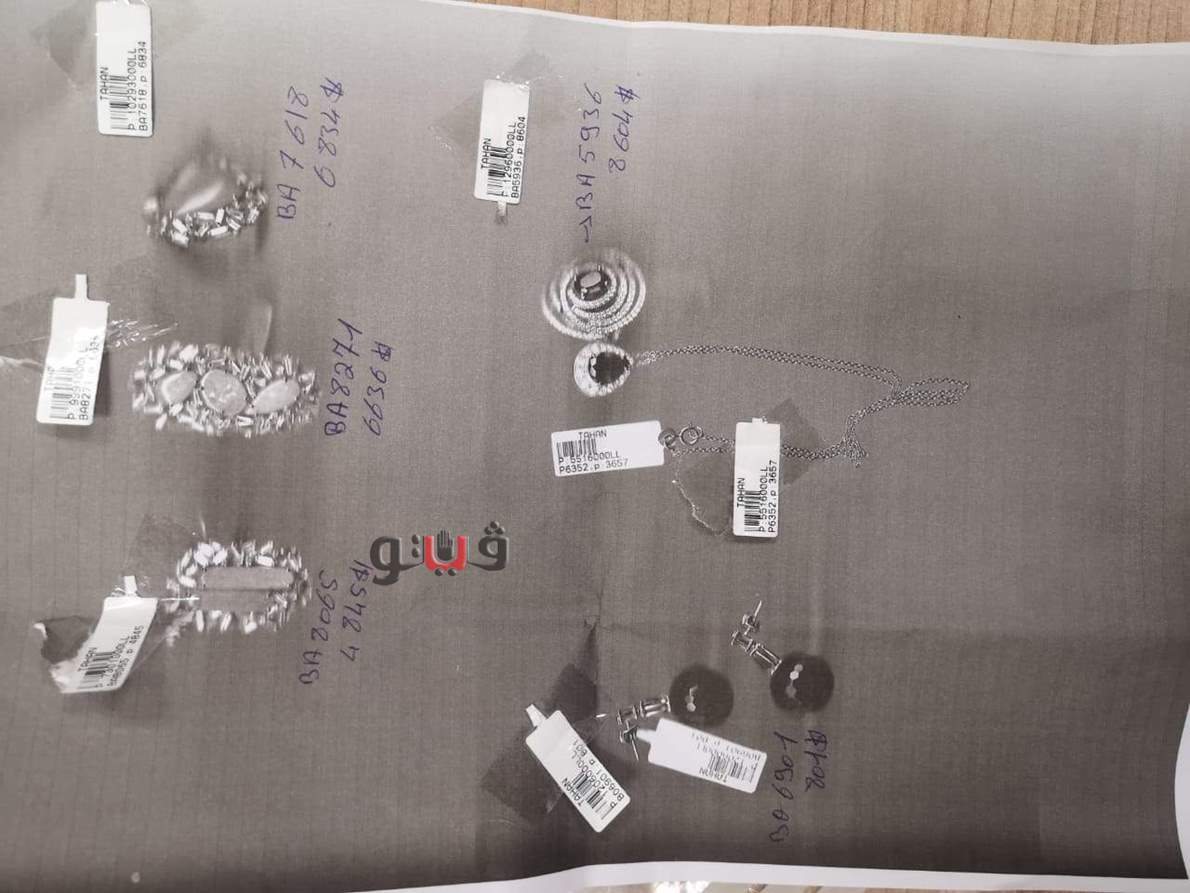 كما قام زكريا حسب الله مدير إدارة الجمرك بتكليف لجنة مكونة من نورهان محمد فؤاد واحمد أمين وخالد حسام الدين مأموري الجمرك لعد وجرد وتوصيف ووزن المضبوطات وتحرير استمارة جرد لها حيث بلغ الإجمالي 4 خواتم و9 سلاسل و2 عقد وحلق وانسيال الجميع مرصعين بفصوص من الألماس والأحجار الكريمة ألوان وأحجام مختلفة بوزن حوالي 155 جراما.