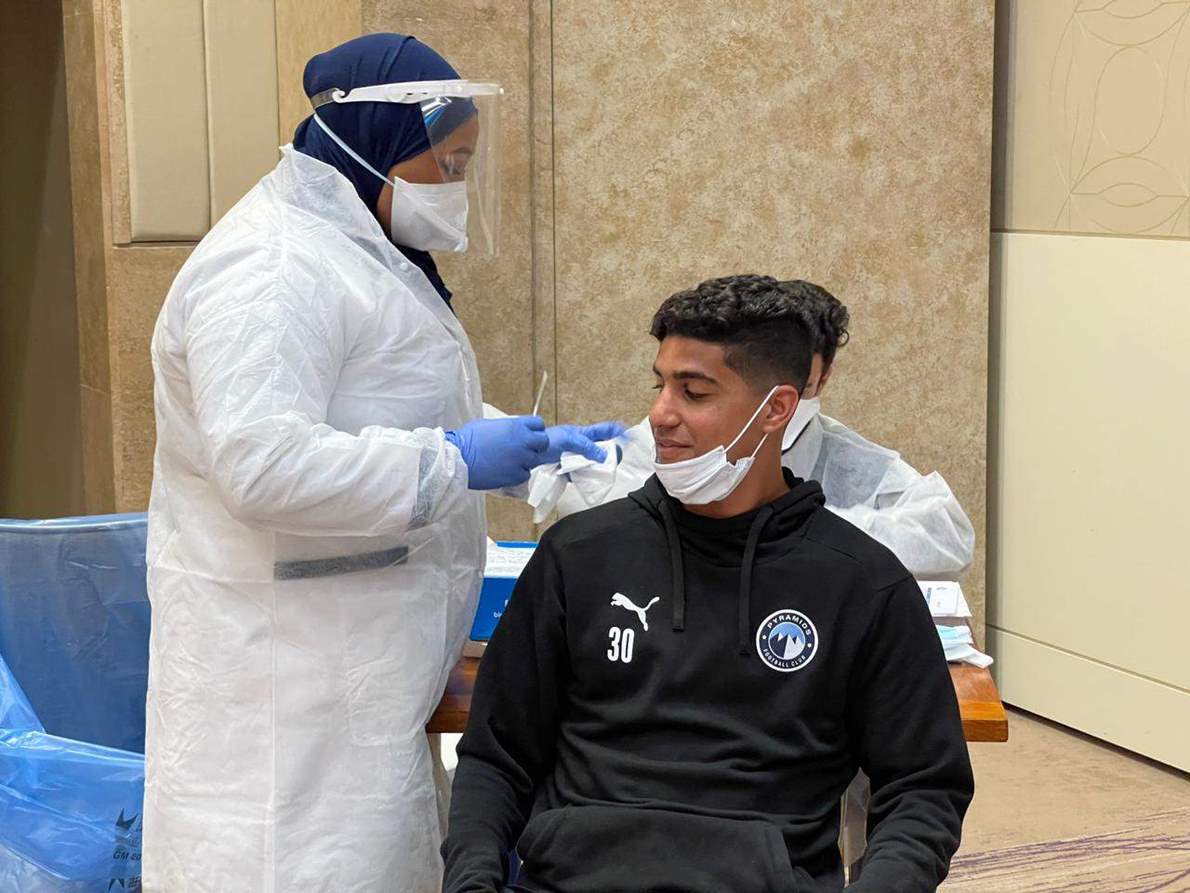 بعثة بيراميدز تجري مسحة كورونا استعدادا لمواجهة الرجاء| صور