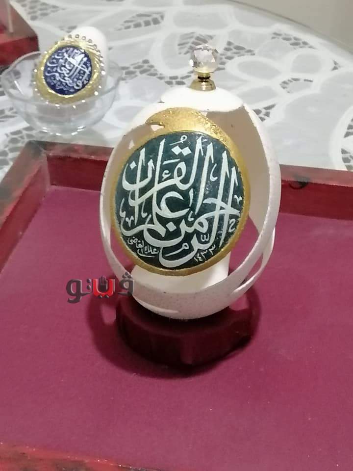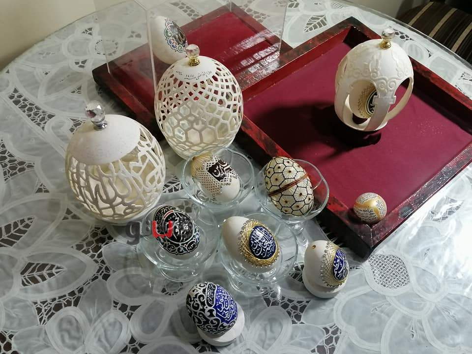 «أشكال فنية وتحف مختلفة الشكل بألوان متعددة تخطف الأنظار، لن يصدق أي شخص أن هذا الحفر أو النحت على قشر بيض النعام».