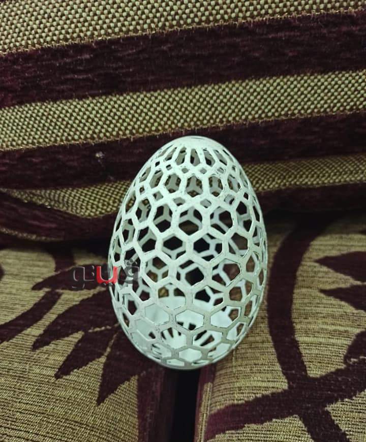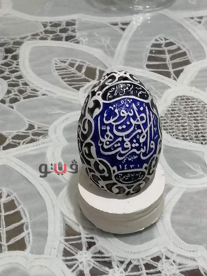 وأكد "علاء" على أن مراحل التنفيذ تتم عن طريق ثقب صغير، متابعا: أما إذا كنت أنوي التطريز على البيض، يكون الثقب كبير خاصة في عملية الكتابة التي تحتاج إلى مهارة معينة وخط مميز.