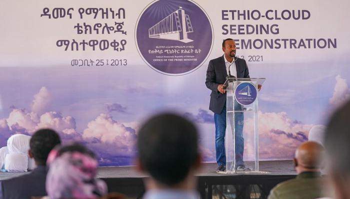 وقال آبي أحمد في كلمته بمناسبة إطلاق المشروع رسميا، اليوم السبت، إنه لا يمكن لبلاده بناء مزيد من السدود دون استخدام تقنية تلقيح الغيوم أو "البذر السحابي".