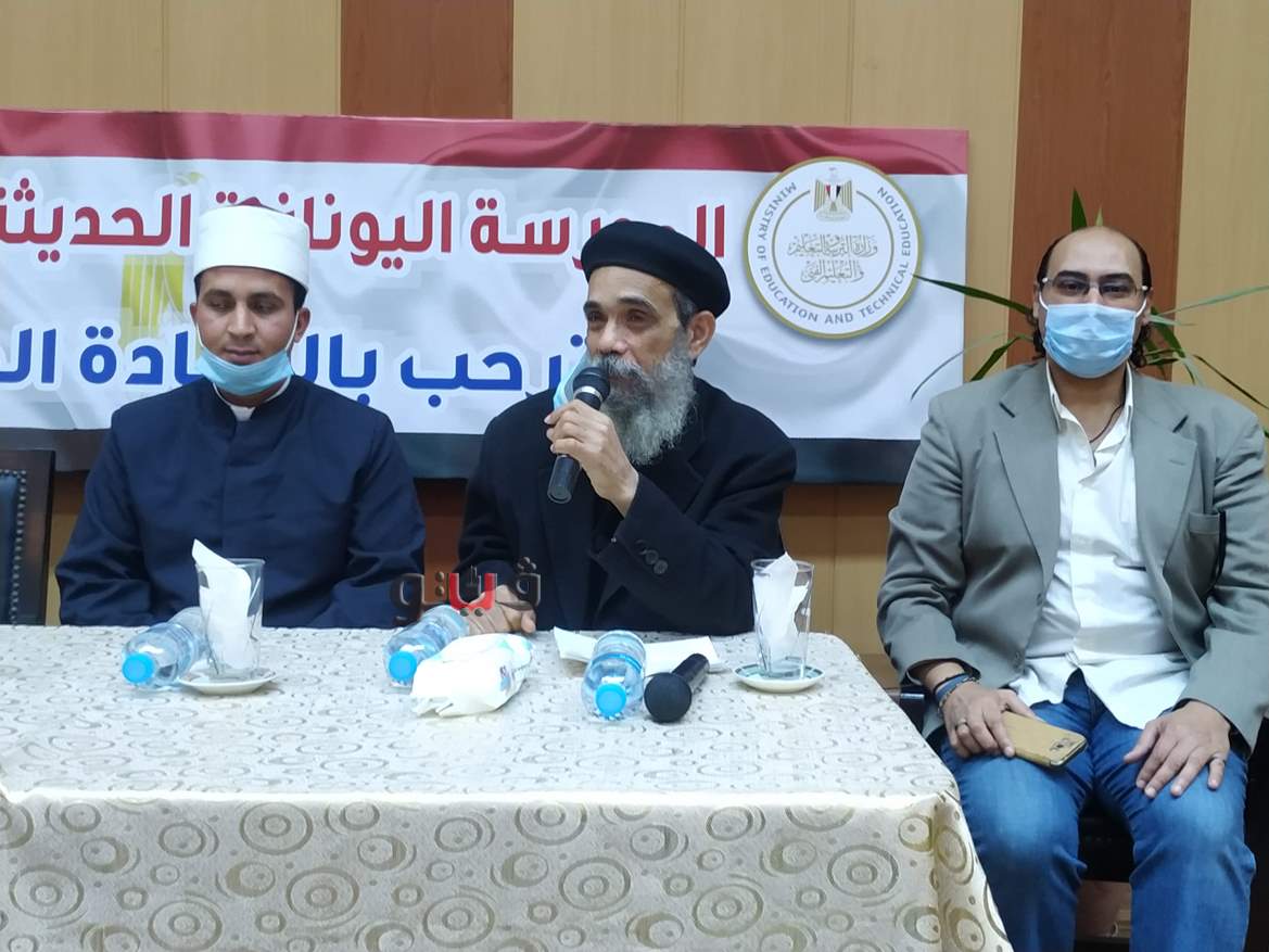 ومن جانبه أضاف الشيخ أحمد جمال في كلمته لطلاب المدرسة اليونانية الحديثة بأن الأديان السماوية تدعو للمحبة والسلام وجميعها قد أوصت بتطبيق مكارم الأخلاق والقيم العليا، مؤكدا أن الكذب والخيانة ونشر الكراهية جميعها صفات ذميمة قد أنهت عنها كل الأديان السماوية.