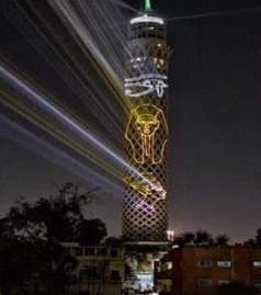 برج القاهرة يتزين بصور الملوك بالتزامن مع نقل المومياوات الملكية | صور