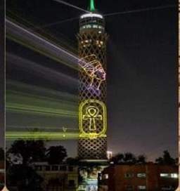 القاهرة في الجزيرة، بالعديد من الأضواء والأشكال التي تحمل صور الملوك المصريين،