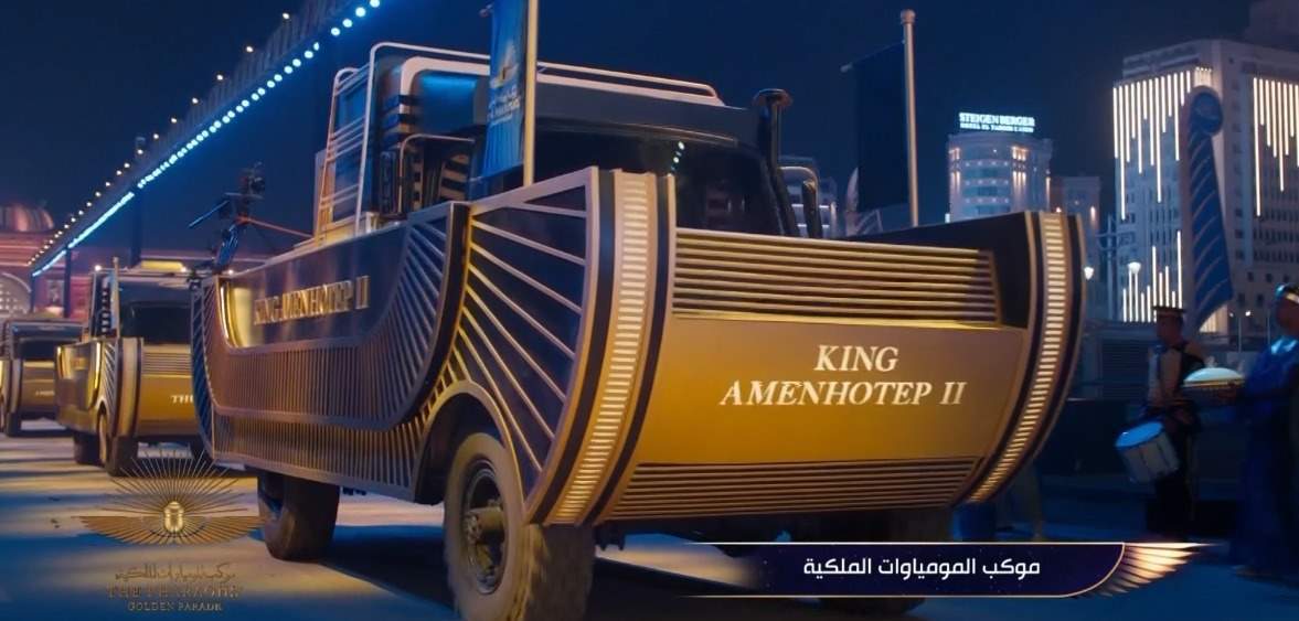 متجها إلى المتحف القومي للحضارة المصرية، في موكب تاريخي تشهده جميع دول العالم، باستخدام