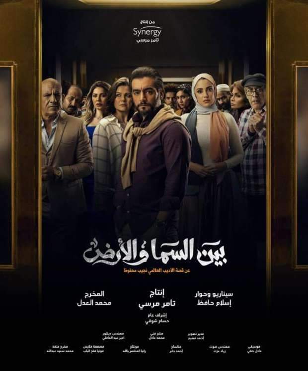 ومسلسل "بين السماء والأرض" بطولة كل من: هاني سلامة، درة، سوسن بدر، غادة عادل، محمد ثروت، يسرا اللوزي، محمود الليثي، نجلاء بدر، ندى موسى، ومن تأليف إسلام حافظ، وإخراج محمد العدل، عن رواية الأديب العالمي نجيب محفوظ.