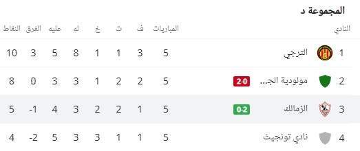 فوز الزمالك على المولودية أحيا آماله فى التأهل للدور ربع النهائي بعد أن كان على أعتاب الخروج من دوري المجموعات، بعدما رفع رصيده إلى 5 نقاط، ولكن تبقى آمال الأبيض معلقة فى أقدام لاعبي الترجي في مباراة الجولة الأخيرة.