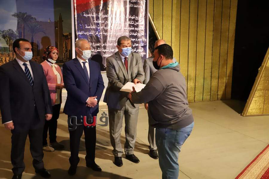 وجاء ذلك بحضور محمد عبد القادر خيري نائب محافظ الأقصر، والدكتور محمد محجوب عزوز رئيس الجامعة، وعبدة هاشم مدير مديرية القوي العاملة بالمحافظة، وسيد حامد رئيس الاتحاد المحلي لعمال الأقصر وقنا.