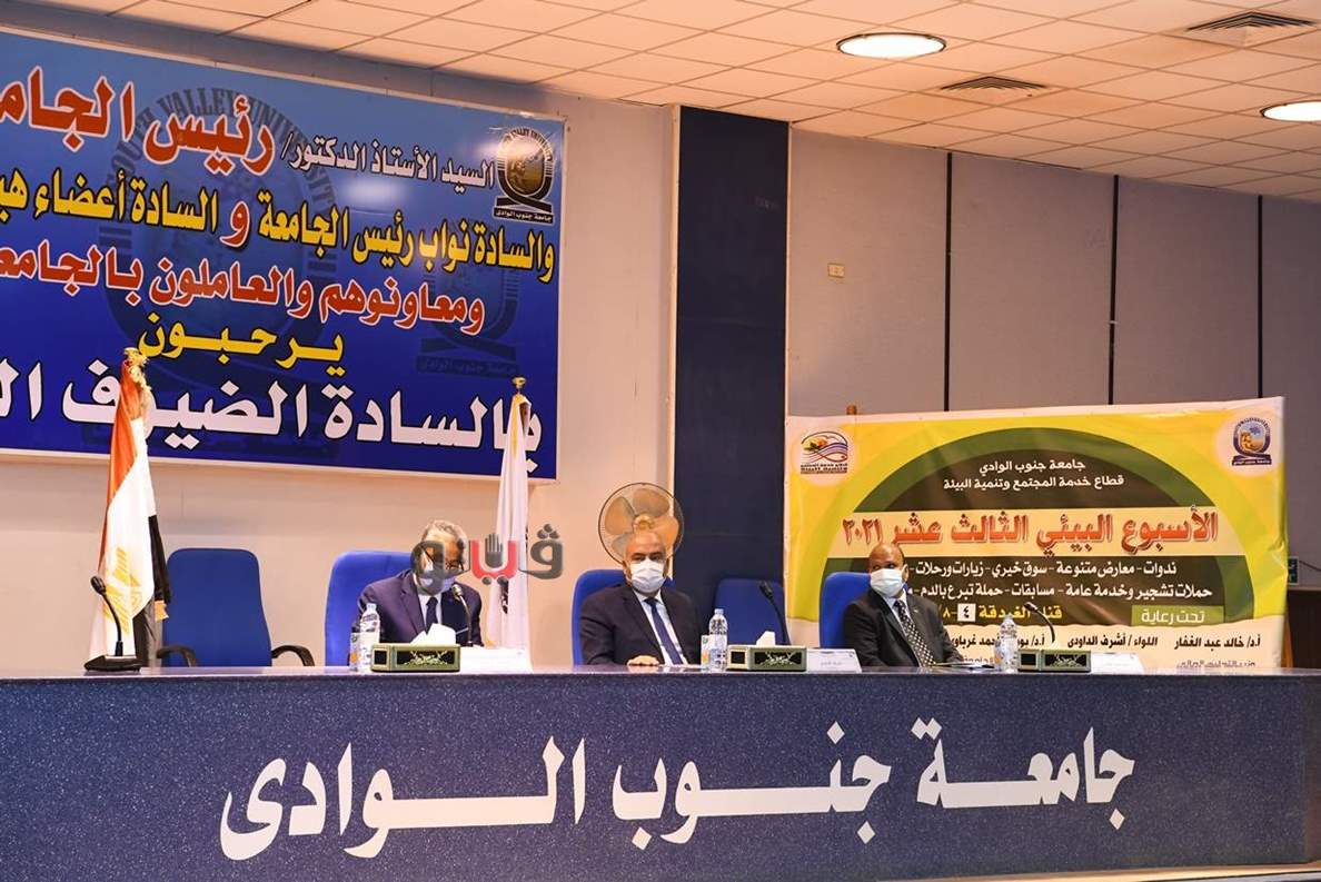 افتتح اللواء أشرف الداودى محافظ قنا والدكتور يوسف غرباوى رئيس جامعة جنوب الوادى فعاليات الأسبوع البيئى الثالث عشر الذى ينظمه قطاع شئون البيئة وخدمة المجتمع بالجامعة خلال الفترة من ٤ إلي ٨