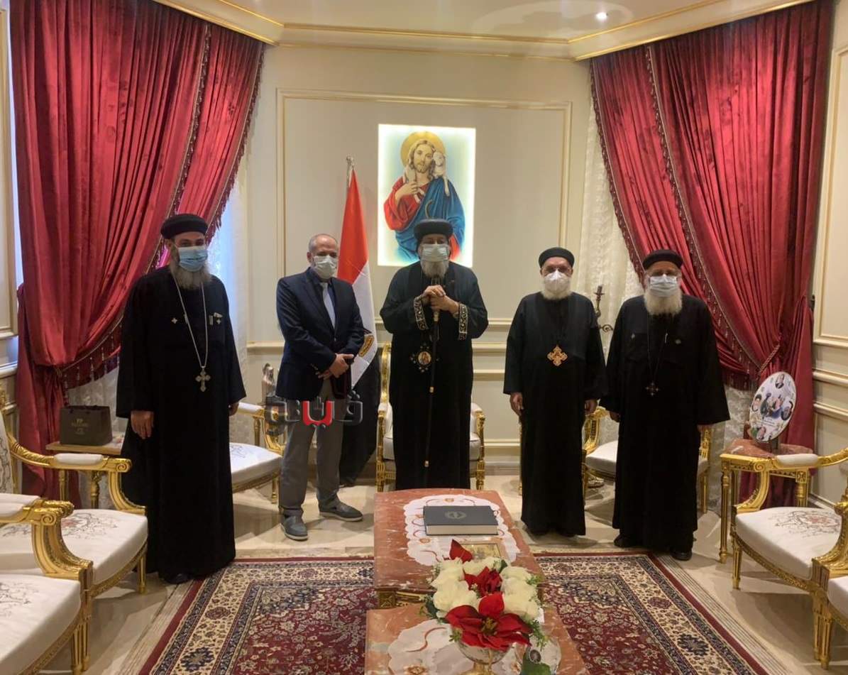 كما استقبل قداسة البابا تواضروس الثاني، اليوم بكرمة كينج مريوط الدكتور سعيد السقعان وكيل وزارة الصحة بالإسكندرية، حيث دار النقاش حول جهود وزارة الصحة في تطعيم المواطنين باللقاح الخاص بفيروس كورونا المستجد وخطة الوزارة لتغطية جميع المواطنين خلال الأشهر المقبلة.