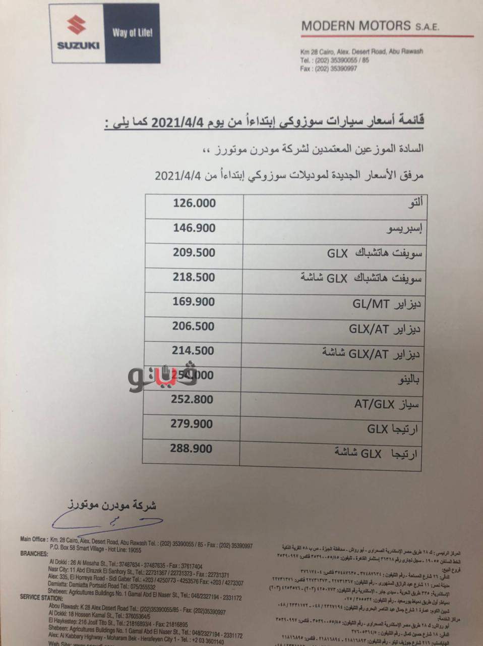للعلامة اليابانية “سوزوكي” فى مصر، زيادة أسعار بعض فئات سوزوكي بداية من اليوم