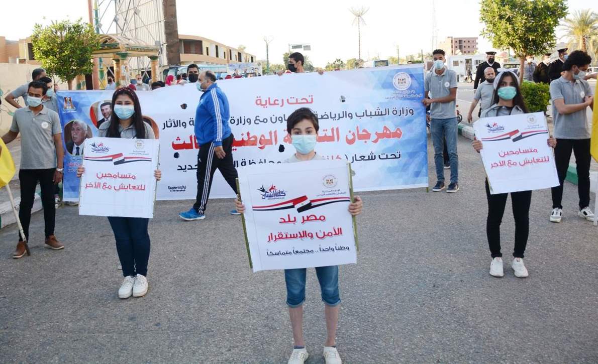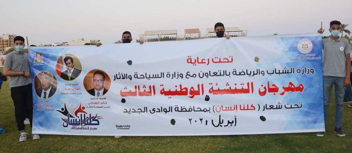 نظمت وزارة الشباب والرياضة، بالتعاون مع وزارة السياحة والآثار، اليوم الأحد، مسيرة لأعضاء برلمان طلائع مصر، في إطار مهرجان التنشئة الوطنية الثالث تحت شعار «كلنا إنسان» بمحافظة الوادي الجديد، برعاية الدكتور أشرف صبحي وزير الشباب والرياضة، الدكتور خالد العناني وزير السياحة والآثار، اللواء محمد الزملوط محافظ الوادي الجديد.