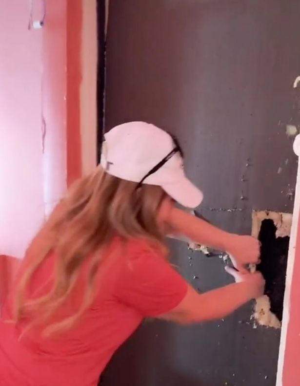 وكما ظهر في الفيديو، كانت والدة ميراندا تسحب وتفك الحائط لتكشف عن باب أسود كبير، لكنها للأسف لا تستطيع تجاوزه، حتى بعد محاولة كسره بمطرقة.