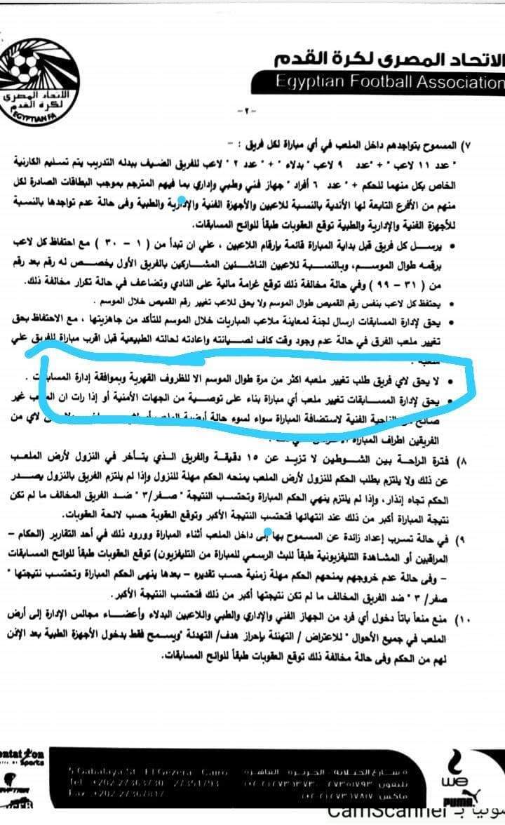ثانيا من غير المعقول أن يتم تغيير ملعب من محافظة لأخرى حيث إن الفريقين يقعان فى محافظة القاهرة بخلاف الفرق.