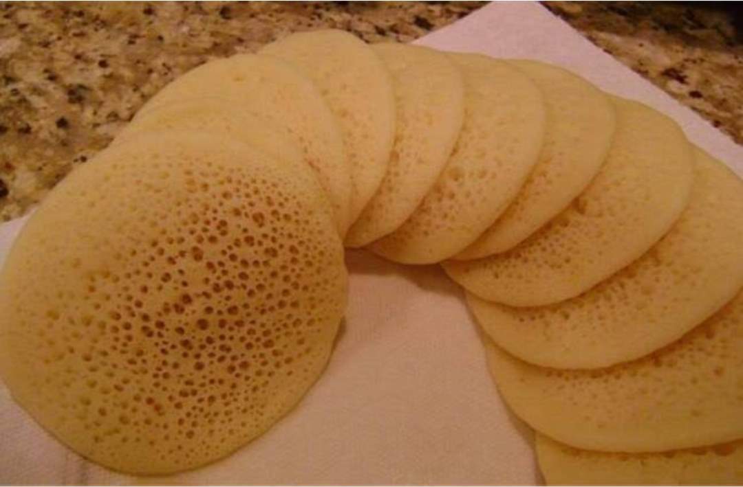 اتركي العجين لمدة ساعة تقريبا حتى تخمر ثم صبيها في مقلاة ساخنة مسبقا على نار متوسطة.