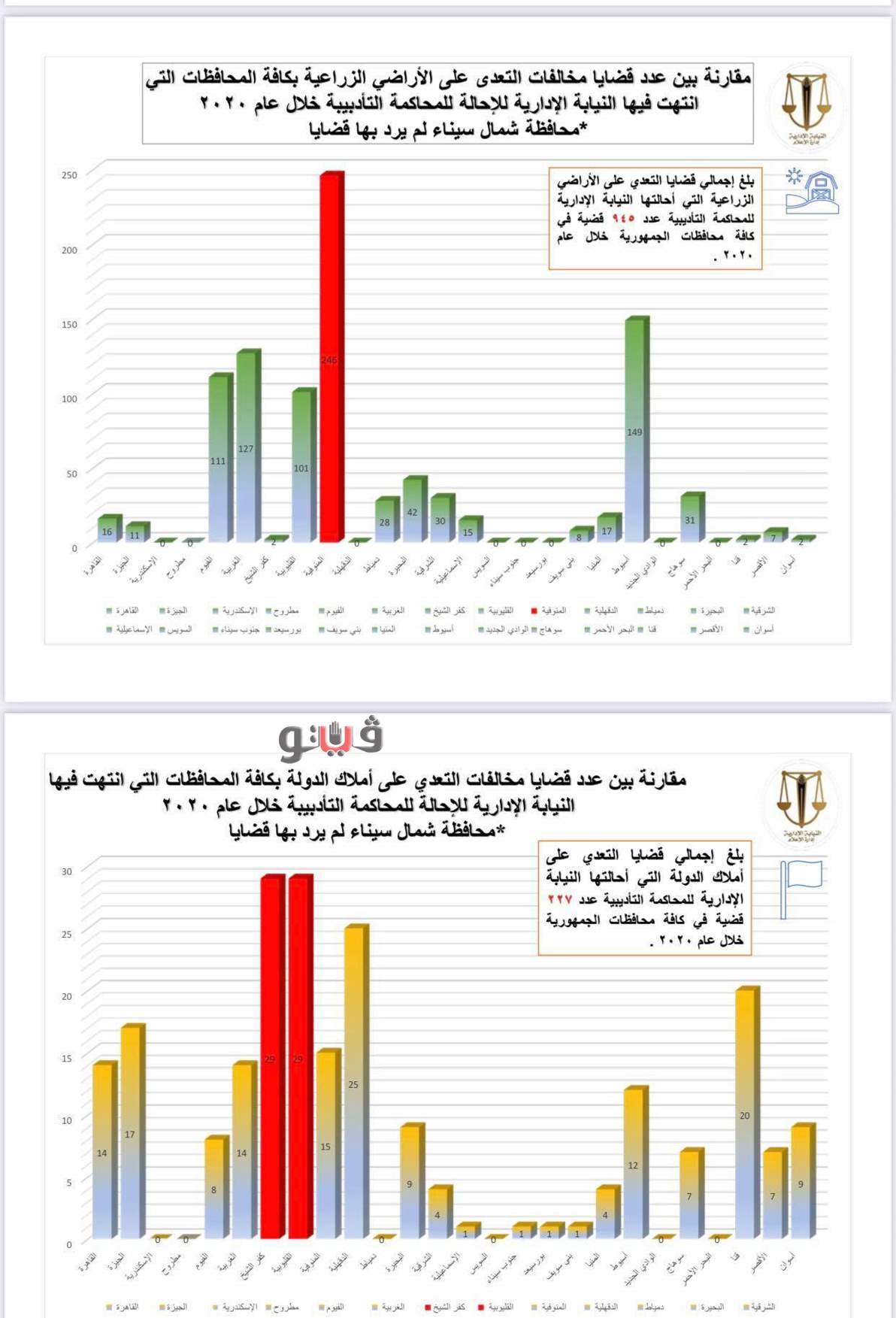 • عدد ٩٤٥ قضية مخالفات تعدي على الأراضي الزراعية انتهت فيها النيابة الإدارية للإحالة للمحاكمة التأديبية بكافة محافظات الجمهورية خلال عام ٢٠٢٠.