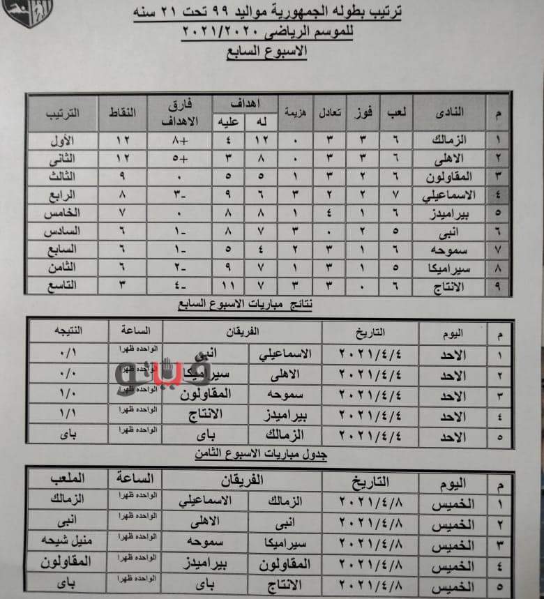 ويتصدر الزمالك والأهلي ، قمة دوري الجمهورية للشباب مواليد 1999، قبل مباريات الجولتين اللأخيرتين للبطولة .