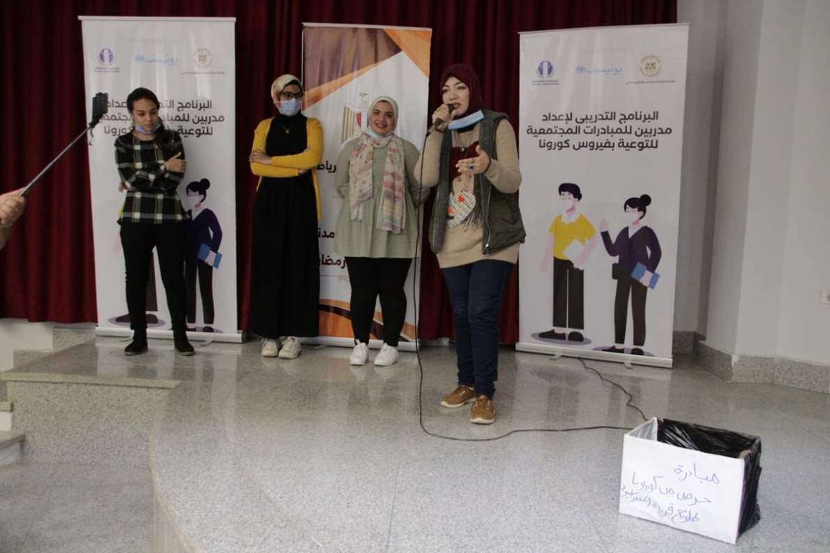 وتطرق تقرير المبادرات المنفذة والمستحدثة للتوعية بفيروس كورونا اولا فيما يخص مبادرات النشء والشباب، حيث تناول تقرير مدربي « شمال سيناء» وإستهداف 168 مشارك ( صحتك أهم-مركز شباب رابعة ، هنهزم كورونا - مركز شباب الخربة، احنا أقوي من كورونا -مركز شباب بئر العبد، التباعد حياة- مركز شباب العريش، هنقعد مركز شباب 6 أكتوبر، أقوي من covid-مركز شباب الشيخ زويد ،صحة وأمان -مركز شباب نجيلة).
