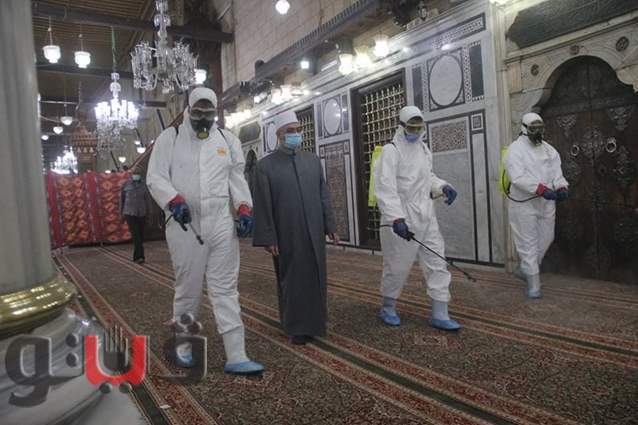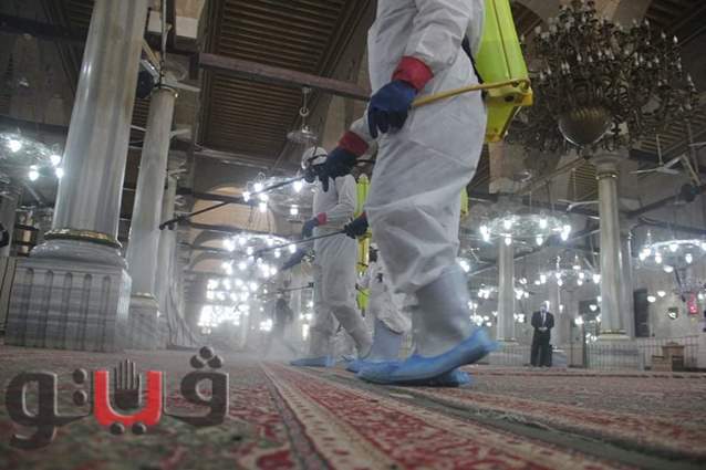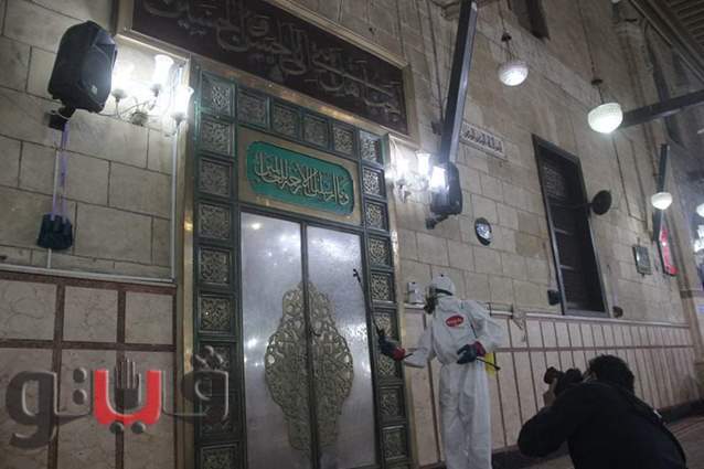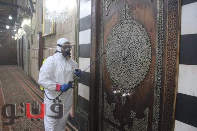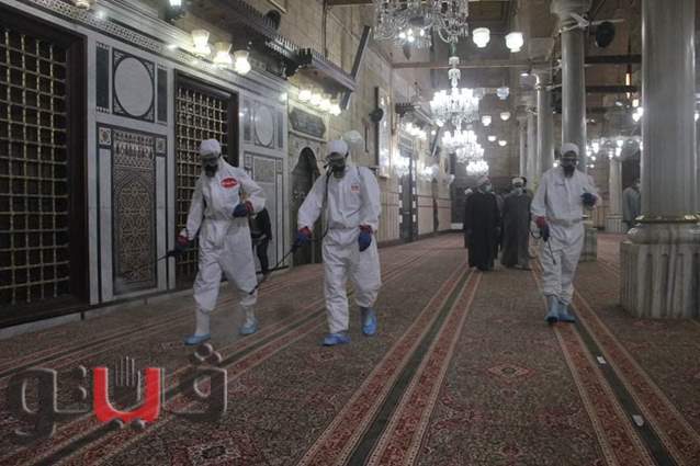 تعقيم مسجد الحسين استعدادا لشهر رمضان | فيديو وصور