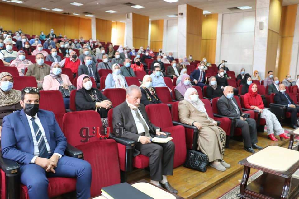 بحضور نائبي رئيس الجامعة الدكتور نانسى أسعد للتعليم والطلاب، والدكتور عبد الرحمن الباجورى لخدمة المجتمع وتنمية البيئة، والمحاسب أكرم عبد الدايم أمين عام الجامعة ولفيف كبير من مديرى العموم والمديرين والعاملين بالجامعة.