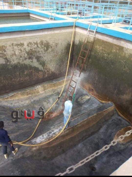 كما تم الانتهاء من أعمال التطهير والتعقيم للخزان الارضي برافع محمد عبده بإشراف المهندس محمود محسن رئيس قطاع السويس وبمعرفة المتخصصين، والفنيين بالمنطقة.