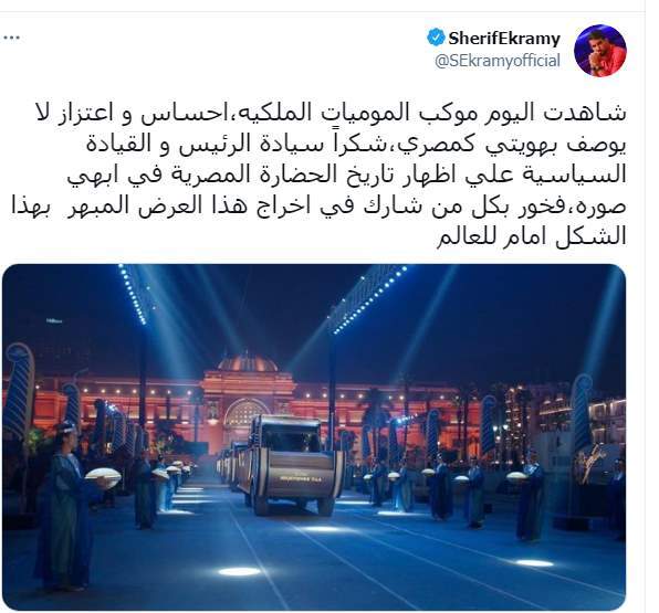 لسه فاكر.. شريف إكرامي يعلق على موكب المومياوات الملكية بعد 6 أيام من الحدث