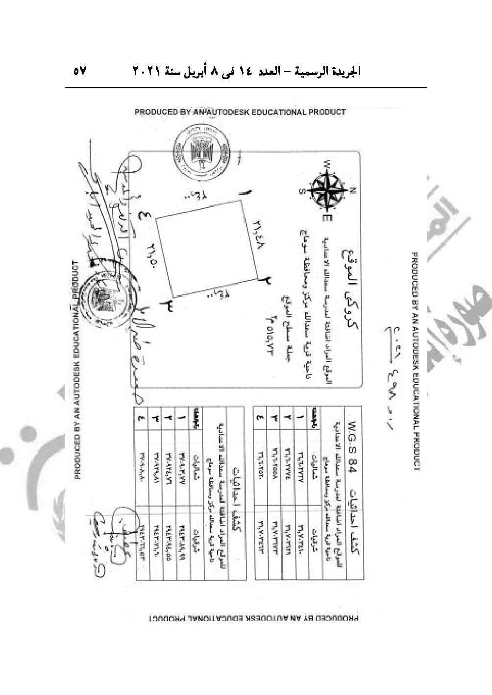 والقرار رقم 498 لسنة 2021، بتخصيص قطعة أرض من املاك الدولة الخاصة بناحية سعد الله بقرية تونس مركز سوهاج بمحافظة سوهاج، بالمجان، لإقامة توسعات لمدرسة سعد الله الإعدادي.