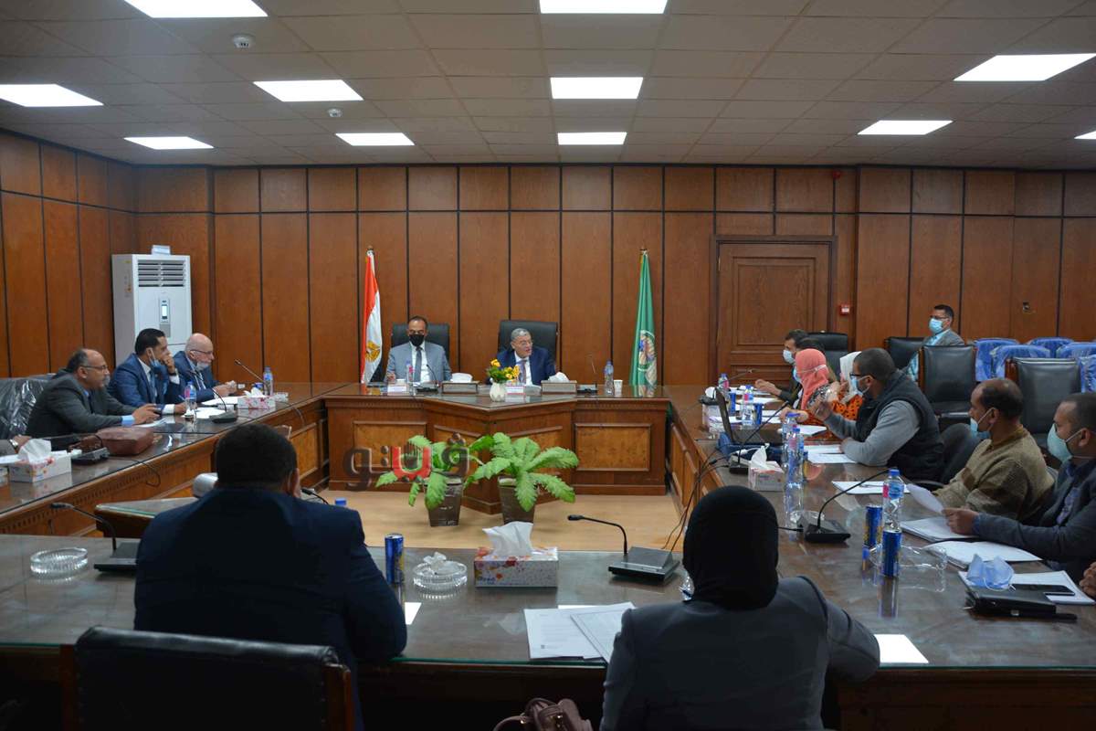 استمع المحافظ، من مسئولي الجهات المختصة في اصدار أوامر الاسناد للشركات المنوط بها تنفيذ أعمال التطوير وإقامة المشروعات بالقري المستهدفة، لمتابعة نسب التنفيذ واجراء المعاينات للمواقع المحددة، ورفع احداثيات المواقع، بالإضافة لمناقشة المعوقات التي تواجه اعمال تنفيذ المشروعات.