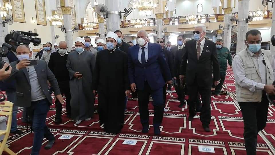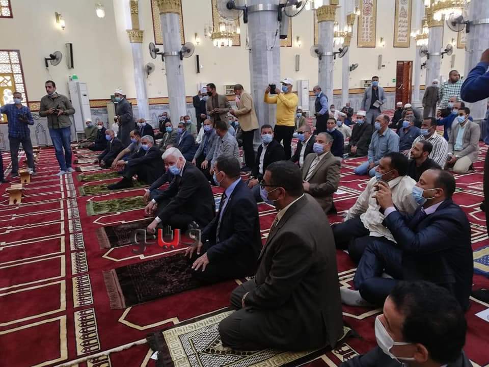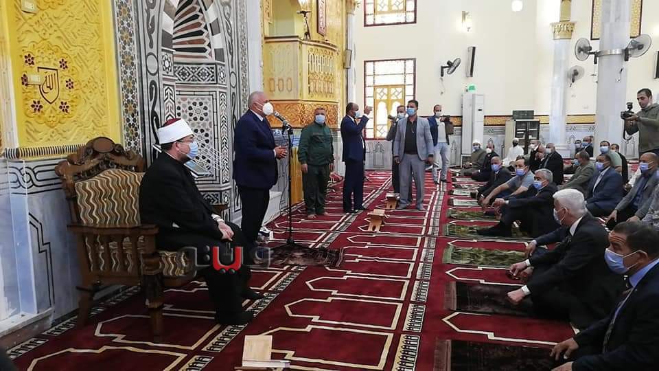 وعقب الافتتاح أدى المصلون صلاة الظهر، أمهم فيها وزير الأوقاف أعقبها خطبة هنأ فيها الأمة الإسلامية بمناسبة حلول شهر رمضان الكريم، وعرض لجهود الدولة في إعمار المساجد، مشيداََبما تم إنجازه في إنشاء هذا الصرح الإسلامي. كما أكد ضرورة الإلتزام بالإجراءات الإحترازية وإرتداء الكمامة بالمساجد خلال شهر رمضان للوقاية من فيروس كورونا.