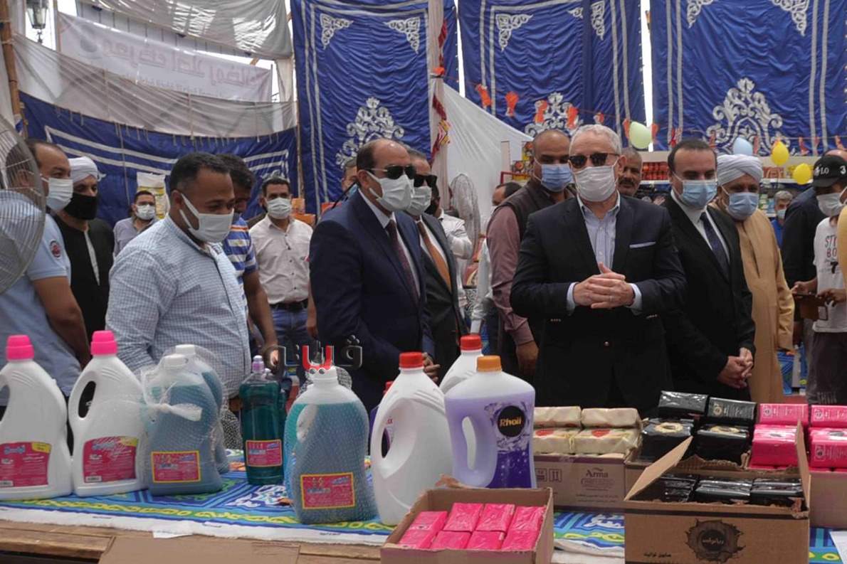 وعقب الافتتاح تفقد المحافظ المعرض لمتابعة جودة السلع ونسب التخفيضات المقررة على الأسعار والتأكد من التزام العارضين والمواطنين بالإجراءات الاحترازية للوقاية من فيروس كورونا.