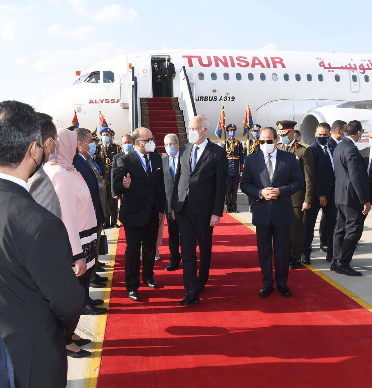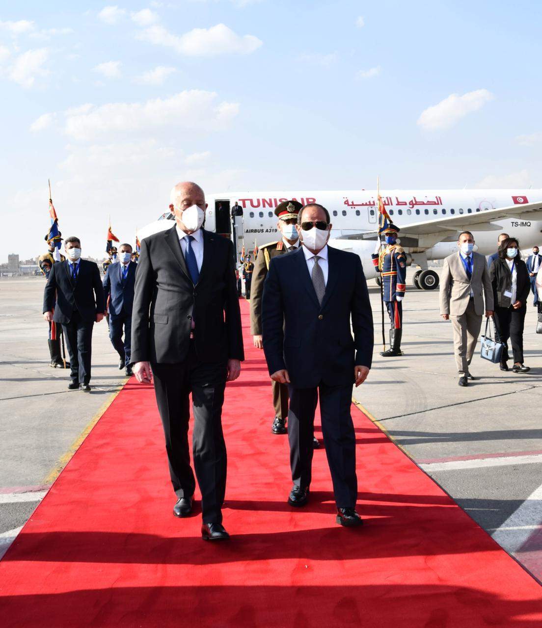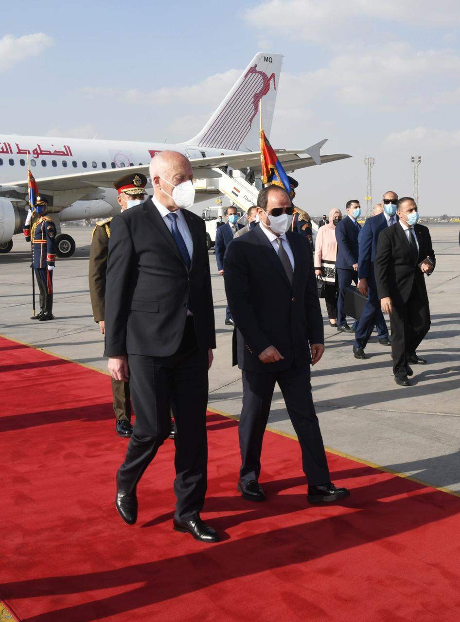 استقبل الرئيس عبد الفتاح السيسي بعد ظهر اليوم بمطار القاهرة أخاه الرئيس التونسي قيس سعيد الذي يحل ضيفاً عزيزاً على مصر في زيارة رسمية لمدة ثلاثة أيام.