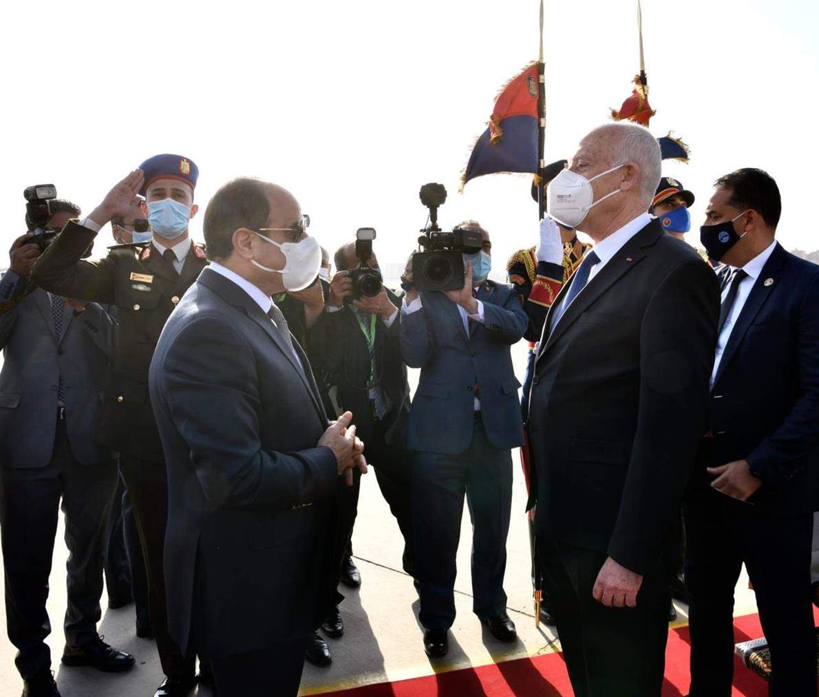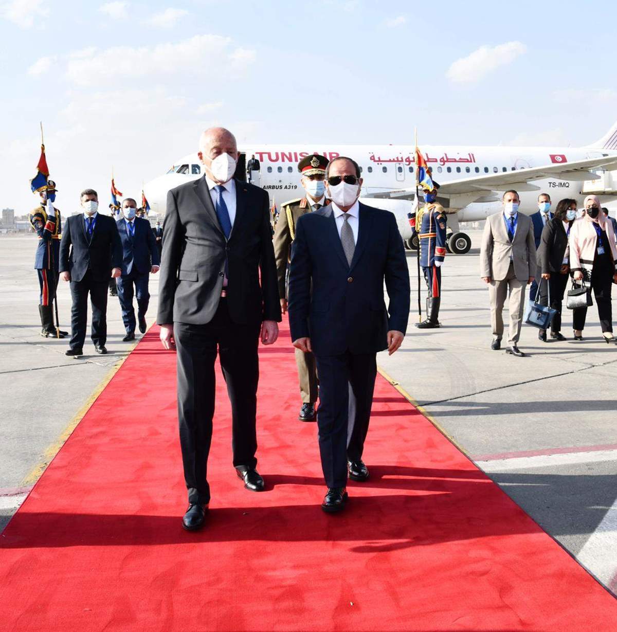 استقبل الرئيس عبد الفتاح السيسي بعد ظهر اليوم بمطار القاهرة أخاه الرئيس التونسي قيس سعيد الذي يحل ضيفاً عزيزاً على مصر في زيارة رسمية لمدة ثلاثة أيام.