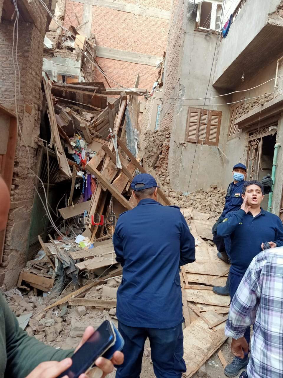 وانتقل الواء مهندس شاكر يونس السكرتير العام وقوات الحماية المدنية وعلى رأسهم العميد إيهاب ثروت مدير الحماية المدنية والمقدم اسلام زكريا ومأمور قسم أول وفريق الاغاثة التابع لمديرية التضامن الاجتماعي، وتم فرض طوق أمني حول المنطقة حفاظًا على سلامة المارة وتم إخراج 5 أشخاص من المنزلين ورفع الأنقاض بواسطة معدات الحي والانقاذ السريع وصرف إعانات عاجلة للمضارين.