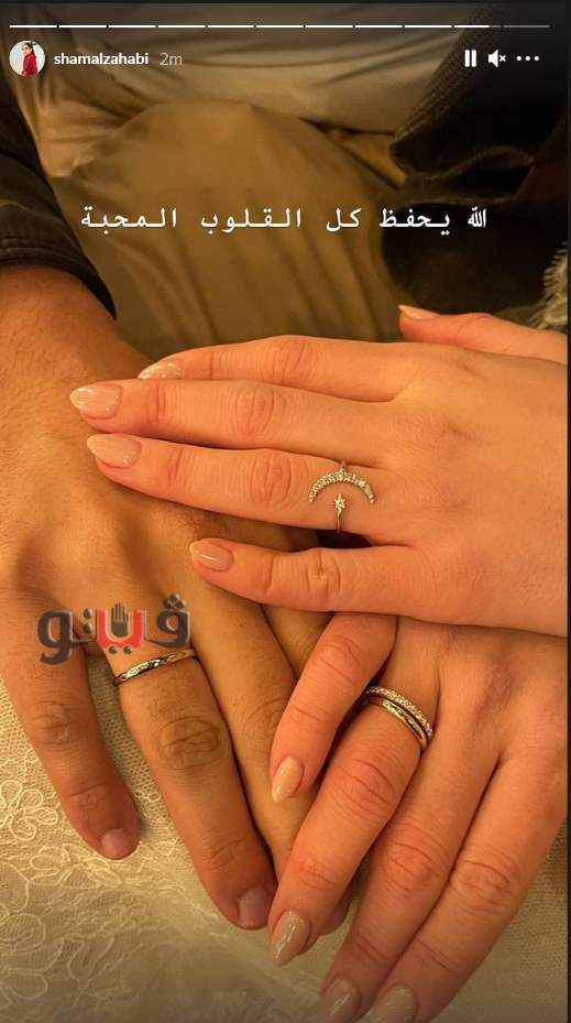وكانت شام ابنة النجمة السورية أصالة، كشفت مؤخراً عن أول فيديو من حفل خطوبتها، وظهرت خلاله وهى تقبل رأس خطيبها "أحمد"، ثم قامت باحتضانه، فى الحفل الذى أقيم على أحد المراكب وسط النيل، بينما قام خطيبها بإهدائها خاتم الخطوبة راكعًا على قدمه فى مشهد رومانسى.