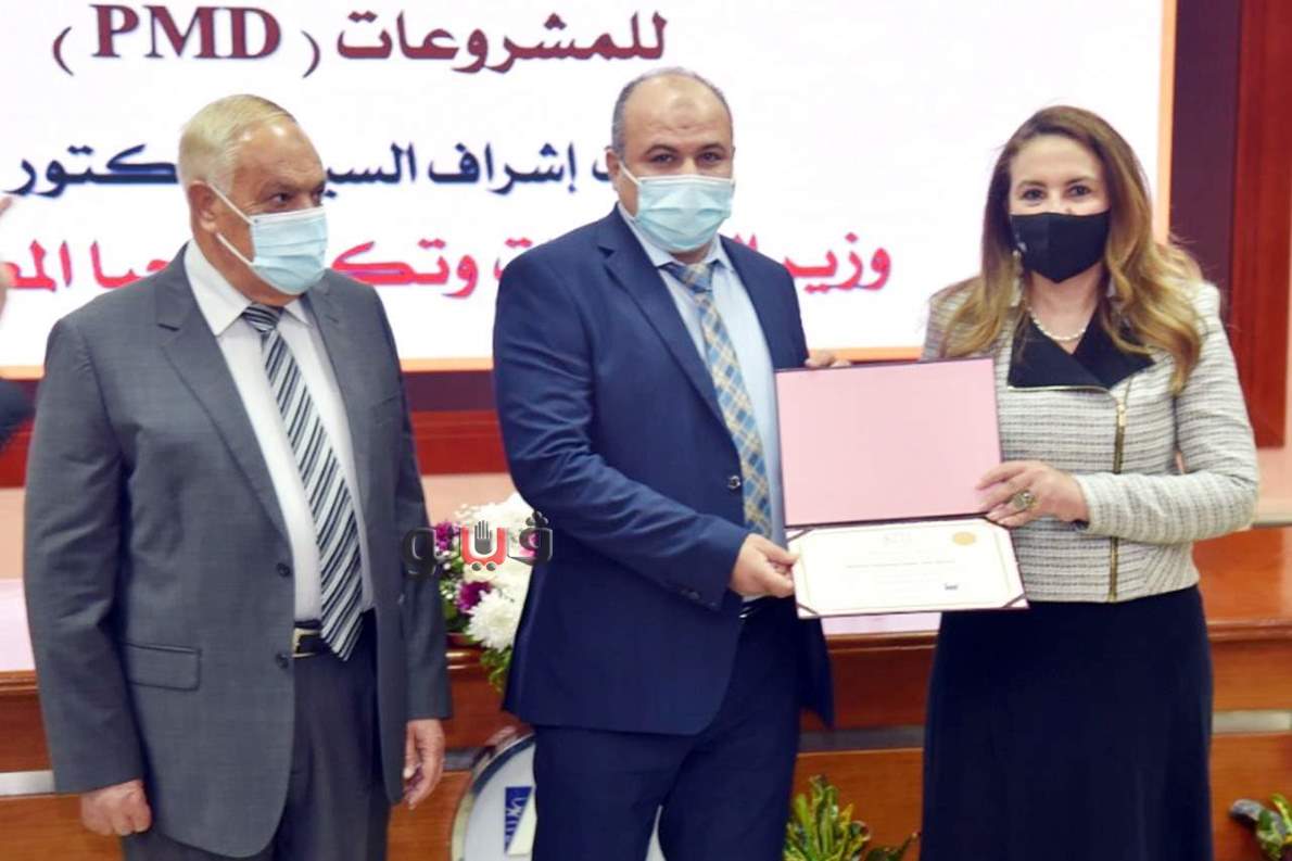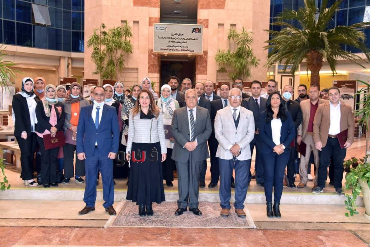 شهد الفريق "التراس" والمهندسة "غادة لبيب" نائب وزير الاتصالات وتكنولوجيا المعلومات للتطوير المؤسسي, حفل تخرج الدفعة الأولي والثانية من دورة دبلومة الإدارة الرقمية للمشروعات PMD, الذي تنظمه وزارة الاتصالات .