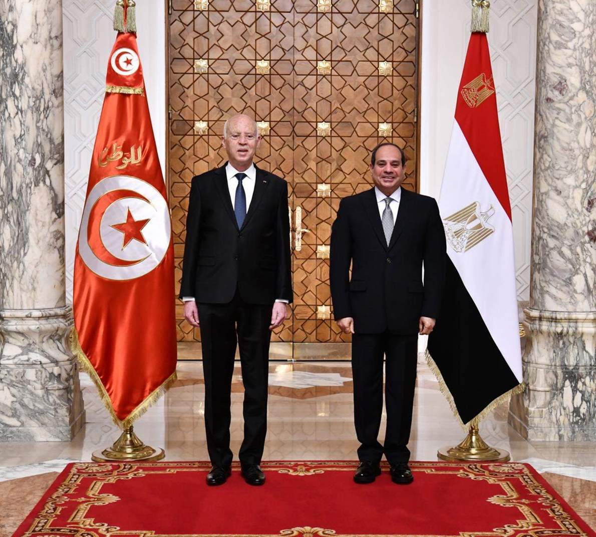 إنه لمن دواعي سروري البالغ أن أرحب بأخي فخامة الرئيس قيس سعيد في أول زيارة رسمية له إلى بلده الثاني مصر، متمنيا له إقامة طيبة ومثمرة. وأغتنم هذه المناسبة لأعرب عن تقديرنا البالغ للروابط التاريخية العميقة التي تجمع بين مصر وتونس وبين شعبيهما الشقيقين.