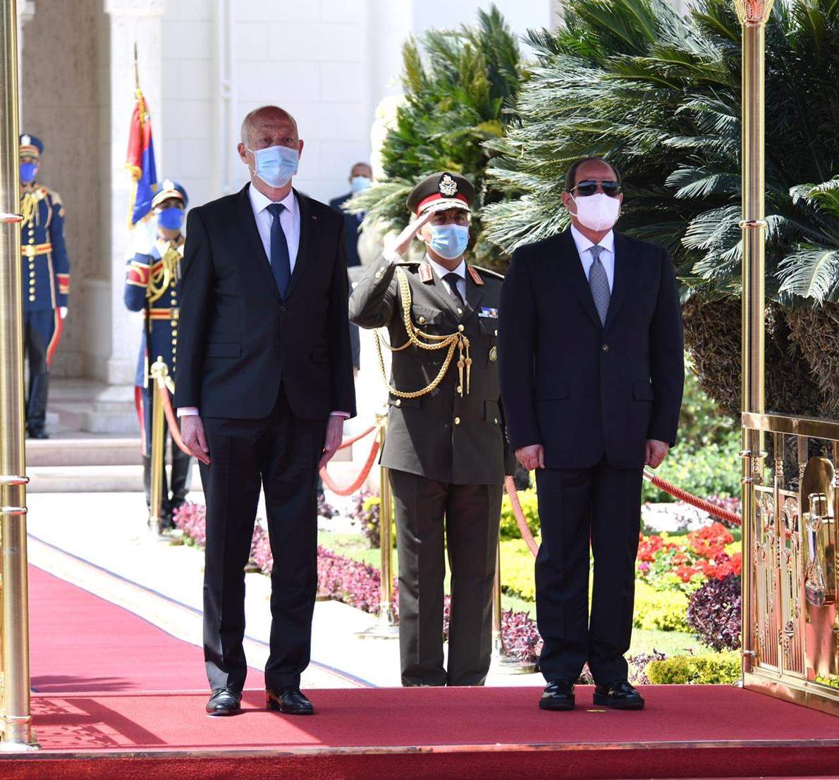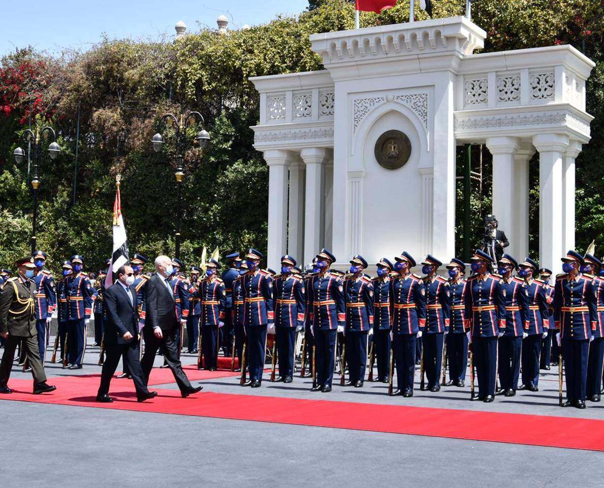 استقبل الرئيس عبد الفتاح السيسي اليوم بقصر الاتحادية الرئيس قيس سعيد، رئيس الجمهورية التونسية، حيث أقيمت مراسم الاستقبال الرسمي وتم استعراض حرس الشرف وعُزف السلامان الوطنيان.