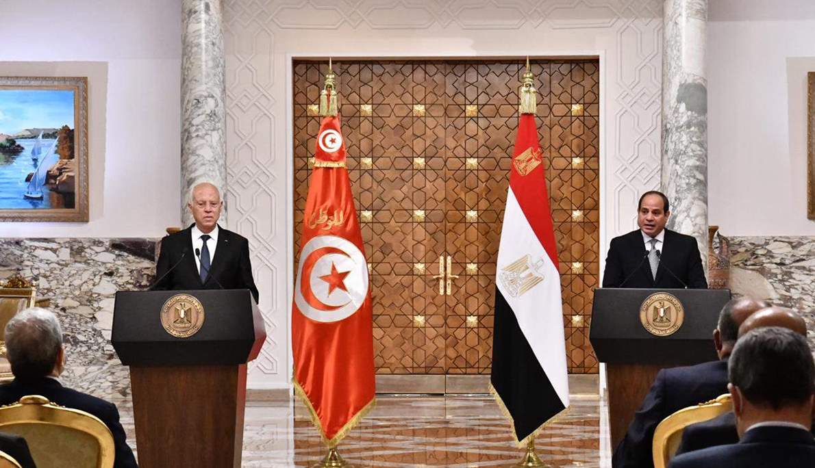 من جانبه؛ أكد الرئيس التونسي اعتزاز بلاده بما يربطها بمصر من روابط وعلاقات وثيقة ومتميزة على المستويين الرسمي والشعبي، مشيداً بما حققته مصر خلال السنوات الماضية على الصعيد الداخلي من إنجازات في مجالات الأمن والاستقرار والتنمية، والتي أفضت إلى استعادتها لدورها الرائد والفعال على الصعيدين الإقليمي والدولي، وما لذلك من انعكاسات مستقبلية إيجابية على العمل الأفريقي والعربي المشترك، وجهود التوصل لتسويات سياسية للأزمات القائمة بالمنطقة، بالإضافة إلى دفع جهود التكامل الاقتصادي والاندماج الإقليمي، مؤكداً حرص تونس على تفعيل أطر التعاون وآليات التشاور والتنسيق مع مصر على كافة المستويات سواء فيما يتعلق بالموضوعات الثنائية أو بالنسبة للقضايا الإقليمية والدولية ذات الاهتمام المشترك.