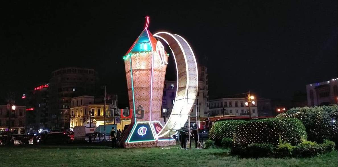 بطول 15 مترا.. فانوس رمضان يزين ميدان رمسيس | صور