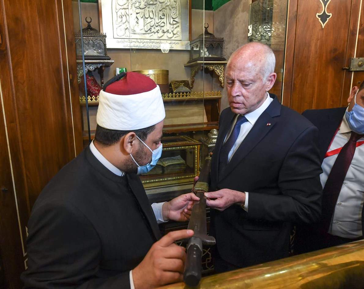 أجرى قيس سعيد، مساء اليوم، جولة في بعض المواقع التاريخية بالقاهرة الفاطمية اطلع خلالها على خصوصيات بعض المواقع التاريخية والدينية.