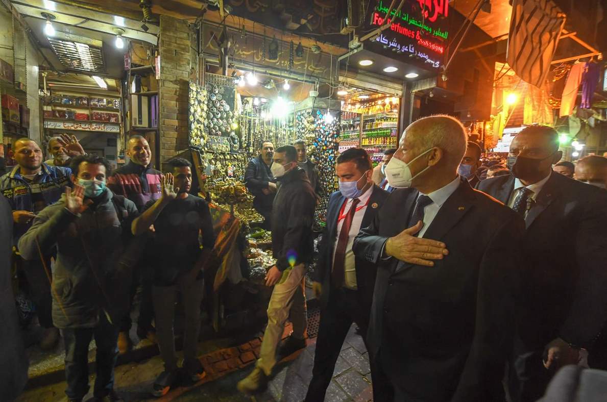 رئيس تونس يتجول في شوارع القاهرة التاريخية | صور