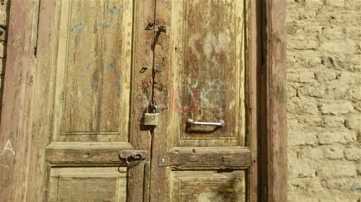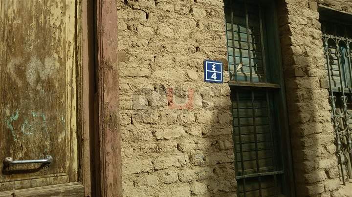 وبالاقتراب من المنزل القديم الذي لم يتبق منه سوى الأطلال، وجدنا رقما بلوحة زرقاء تحمل رقم 4 والبوابة الخشبية القديمة ذات اللون الأصفر، وعليها أحد الأقفال القديمة، ورزة قديمة مفتوحة، وشبابيك حديدية بلغت من العمر عتيًا كما يذكر.