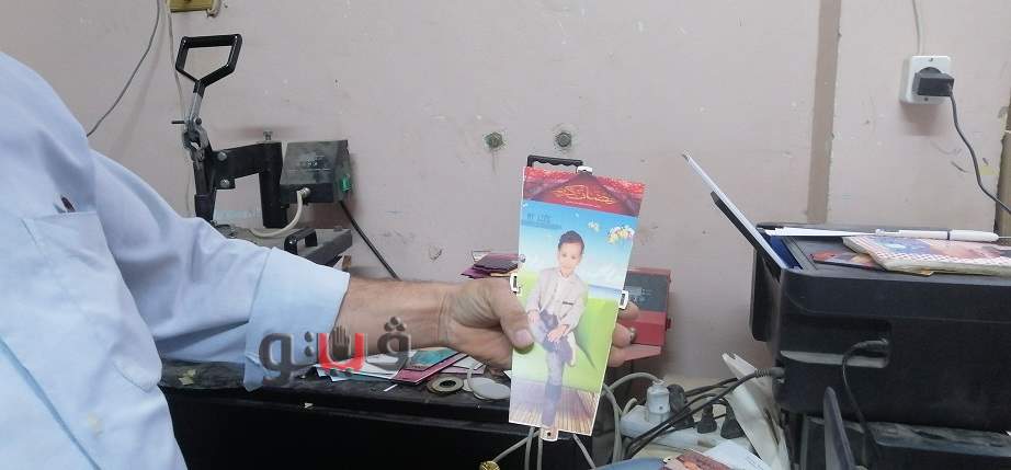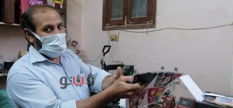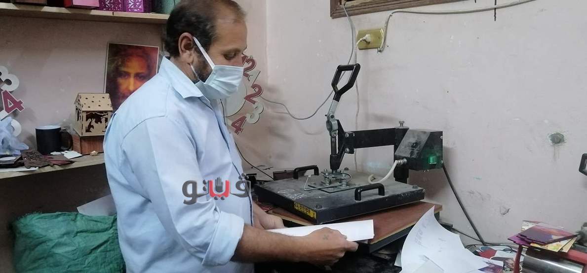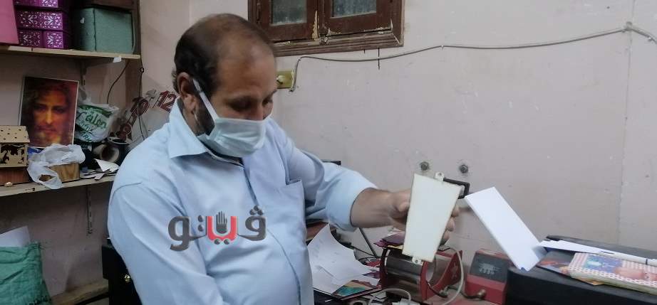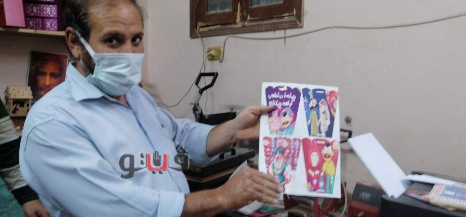 قال "هاني" أن شقيق زوجتي هو الذي يقوم بالتصميم لكل الانواع الموجودة هنا علي الطاولة ولكنه يختار بالطبع ما يتناسب مع طبيعة مجتمعنا وخاصة هنا في الصعيد ولكن اذا كان لدي شخص تصميم معين لا مانع ولكن يكون بطلب منه وكمية فليس معقول عمل قطعة واحدة فقط الا للصورة والاسم فقط .