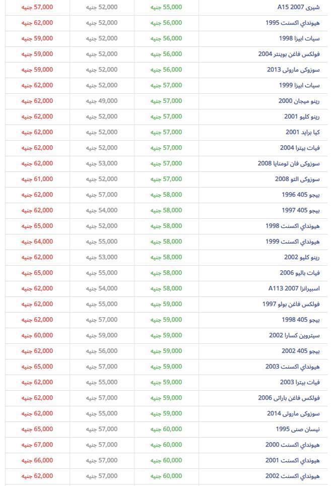 أسعار السيارات المستعملة في مصر.. 200 سيارة يمكن شراؤها ما بين 50 و75 ألف جنيه
