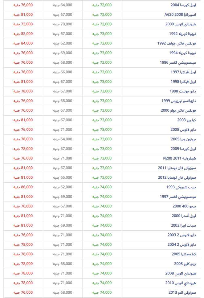 وتنشر "فيتو" أسعار السيارات المستعملة المتراوح سعرها ما بين 50 ألف جنيه وحتي 75 ألف جنيه، لموديلات ما بين 1994 إلي موديلات 2010.
