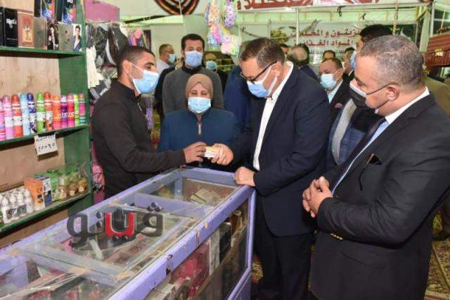 وتفقد محافظ الشرقية أجنحة المعرض للاطمئنان على وجود جميع أنواع السلع، والتأكد من جودتها وانخفاض أسعارها والتقى المواطنين واطمأن منهم على الأسعار المخفضة التي يقدمها المعرض.
